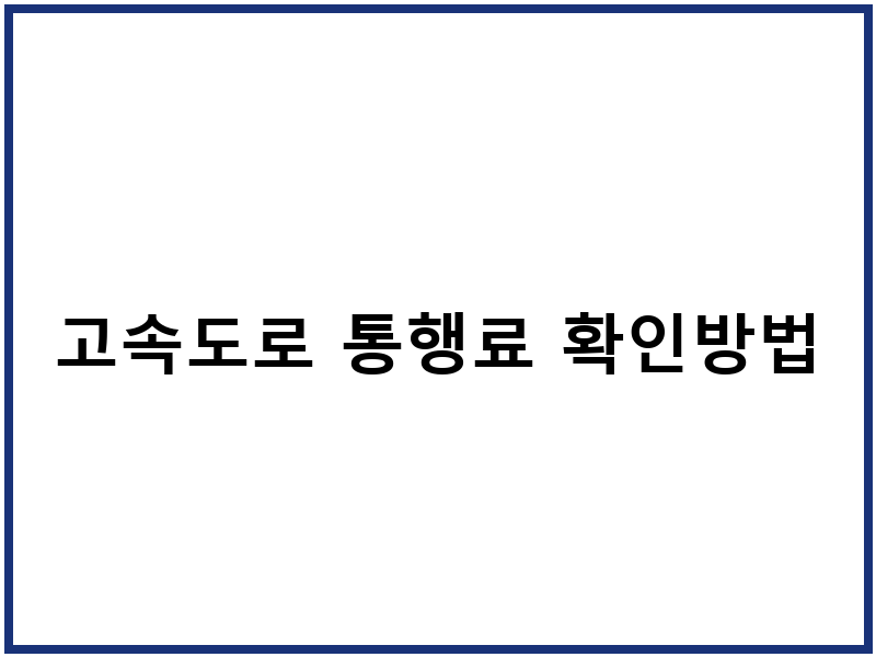 고속도로 통행료 확인, 이것만 알면 끝