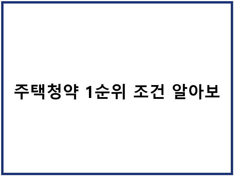 주택청약 1순위 조건 알아보기
