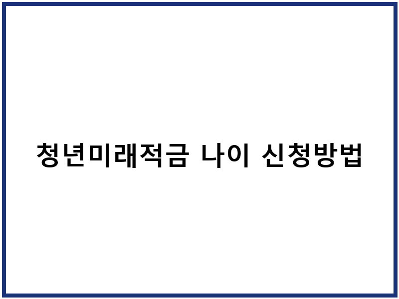 청년미래적금 나이 제한과 동시 가입 꿀팁