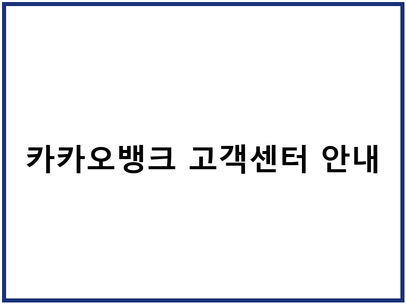 카카오뱅크 고객센터 안내