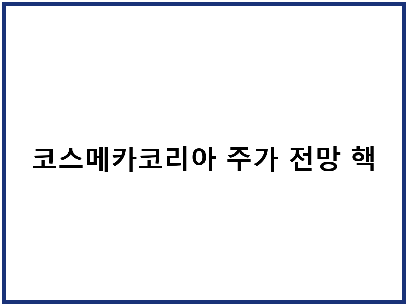코스메카코리아 주가 전망 상세분석