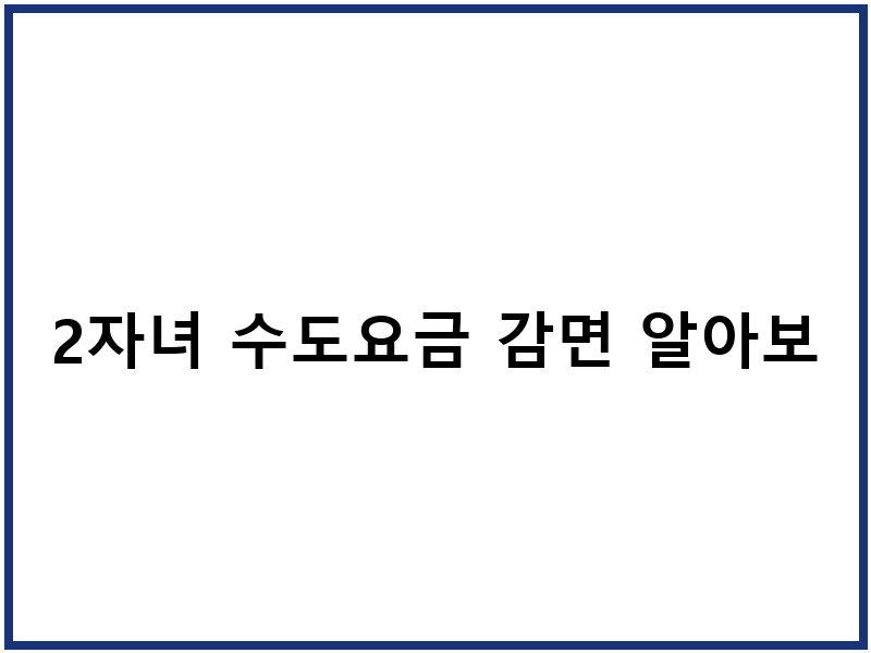 2자녀 수도요금 감면, 왜 중요할까요?
